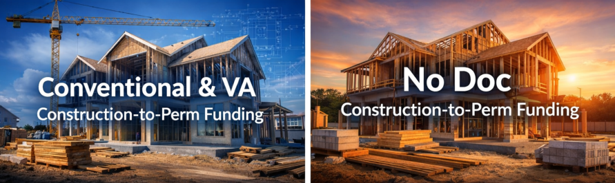 PROGRAM 1: Conventional, VA and Self-Employed Construction-to-Perm Funding